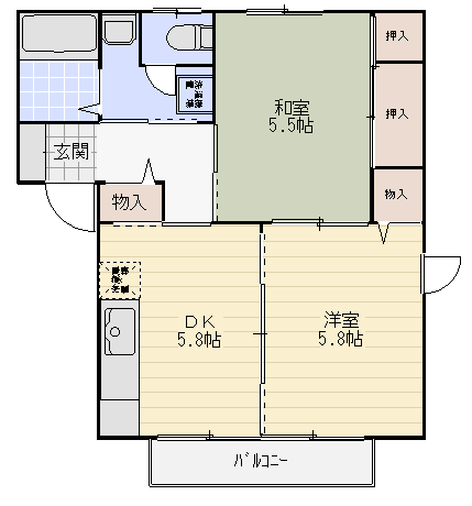 | 設備 | エアコン,シャワー,洗面化粧台,物置, BSアンテナ,温水洗浄便座 | ||