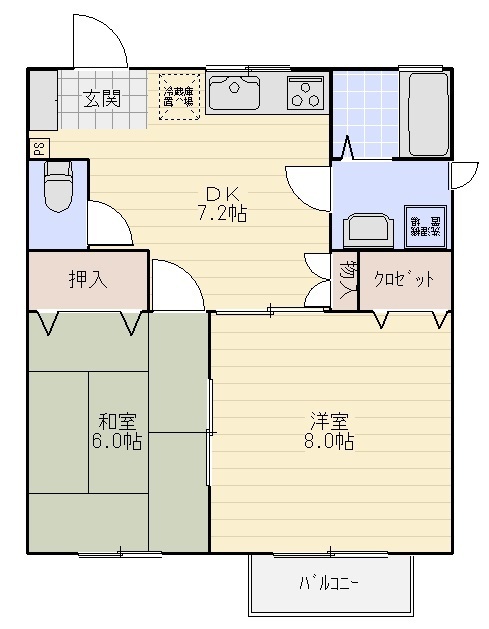 | 間取り | 2DK(洋8,和6,DK) | 階数 | 2階 |